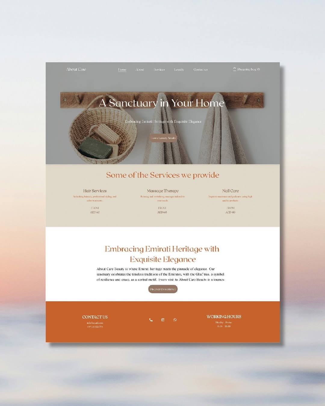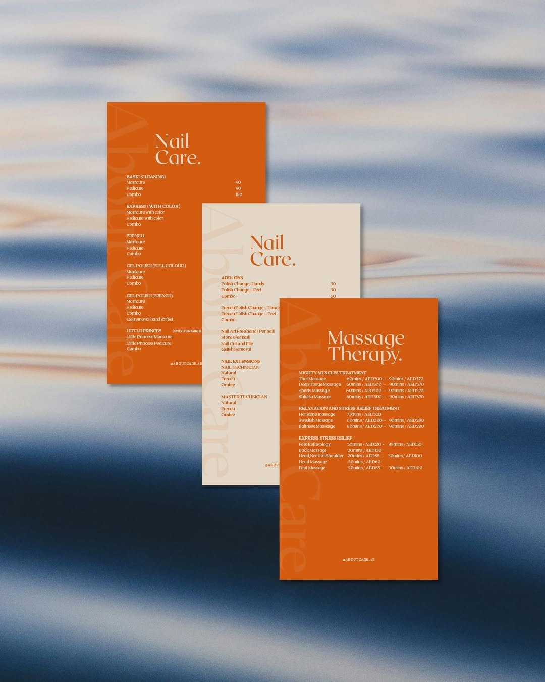 Let About Care bring the salon experience to you.” From branding and menu design to crafting a seamless website experience, our team worked closely with About Care to develop a cohesive brand identity that reflects their unique offerings.