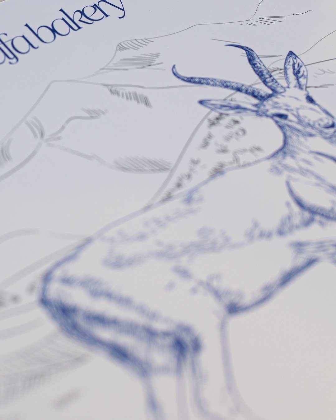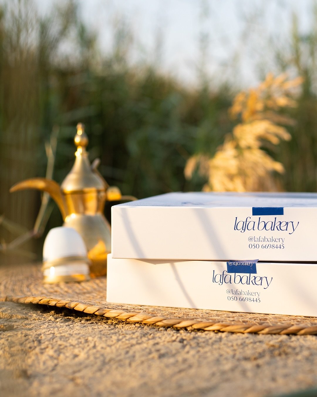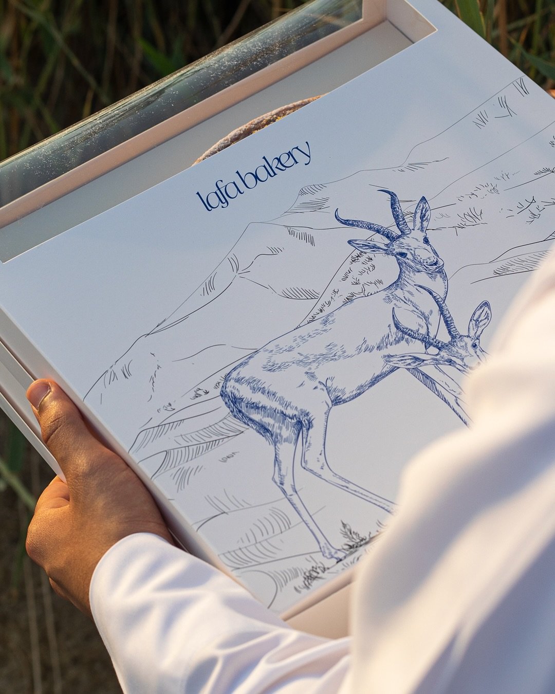Tart box design for Lafa Bakery — Inspired by the Emirati environment and the Arabian sand gazelle, renowned for its slender curved horns and vibrant colors that blend seamlessly with its preferred open sandy habitat.